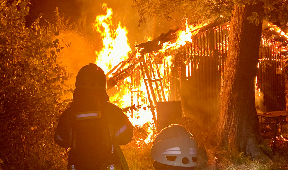 In den frühen Morgenstunden wurde die Feuerwehr um 5:25 Uhr zu einem Brand im Grenzgebiet zwischen Wiehl und Nümbrecht gerufen. Einer ersten Meldung zufolge sollte es zwischen den Orten Drabenderhöhe und Oberstaffelbach in einem Wald nahe der L338 brennen. Wie Wilhelm Weber, Stellvertretender Leiter der Feuerwehr Nümbrecht, berichtet, stand beim Eintreffen der Einsatzkräfte aus Drabenderhöhe etwa 300 Meter von der Straße entfernt eine sechs mal acht Meter große Fischerhütte in Vollbrand. Vor Ort gibt es auch mehrere große Teiche, was für die Feuerwehr „ein großes Glück“ war, wie Weber sagt. „Darüber konnten wir die Wasserversorgung sicherstellen.“