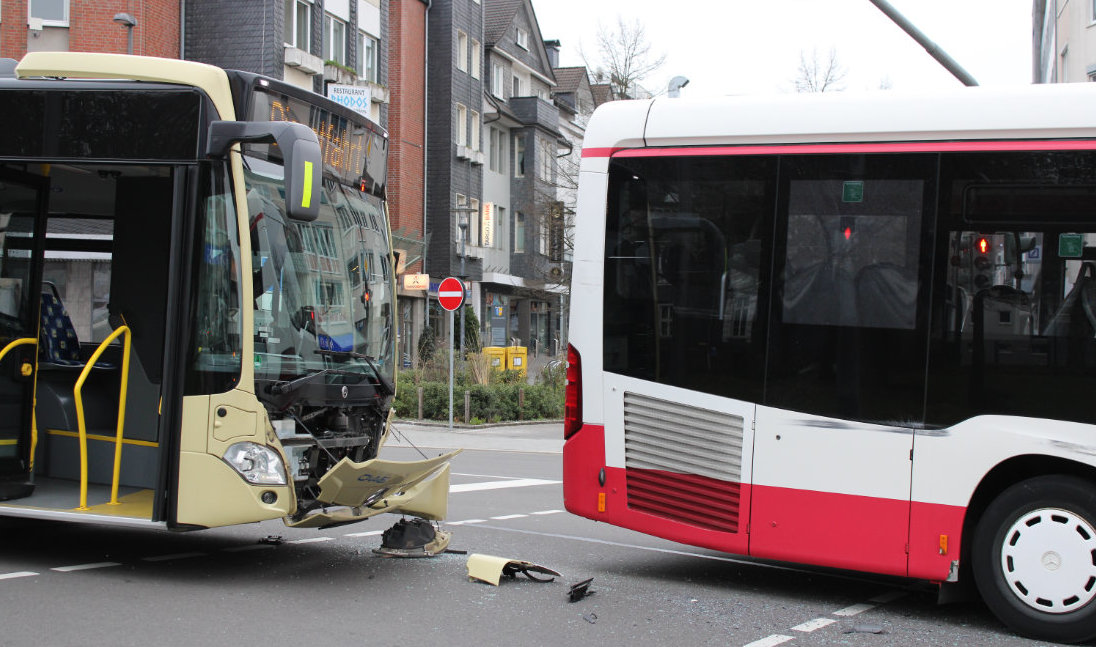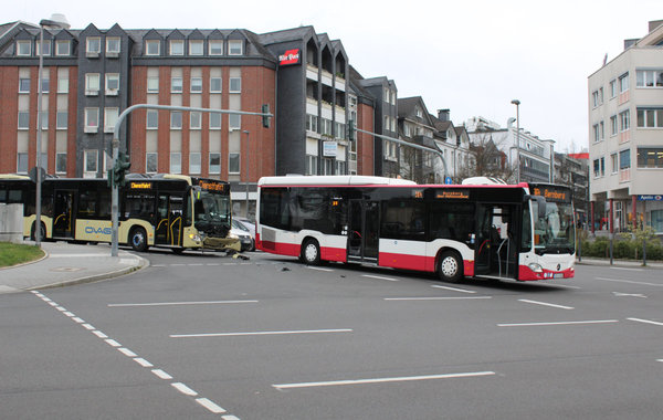 Gegen 8 Uhr heute Morgen kollidierten aus bislang ungeklärter Ursache zwei Busse auf der Kreuzung in Höhe des ehemaligen Busbahnhofs in Gummersbach. Wie ein Polizeisprecher auf OA-Nachfrage mitteilte, wollte der vorausfahrende Bus in Richtung Karlstraße abbiegen und das zweite Fahrzeug in Richtung der Wilhelm-Breckow-Allee abbiegen. Dabei kam es zur Kollision.