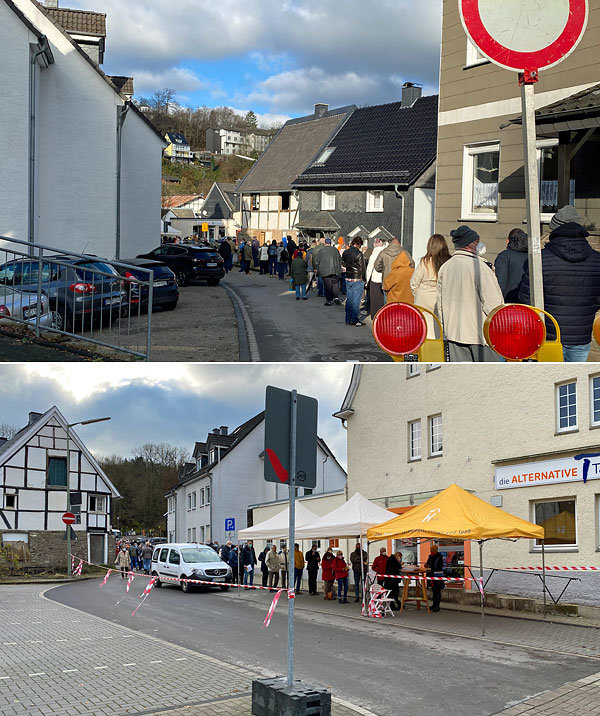 Gefühlt war halb Ründeroth auf den Beinen, um sich in den Räumlichkeiten der Alternativen Tagespflege Uwe Söhnchen eine Corona-Impfung geben zu lassen. Dort machte gestern das Impfmobil des Oberbergischen Kreises Station. Laut Kreisverwaltung erhielten über 400 Personen einen „Piks“. Wegen des großen Andrangs gab s Wartezeiten von bis zu dreieinhalb Stunden, doch die Menschen blieben geduldig. Das Ordnungsamt Engelskirchen und die Polizei sorgten dafür, dass die Nebenstraße abgesperrt wurde, um die Sicherheit der Wartenden in der Schlange zu gewährleisten.