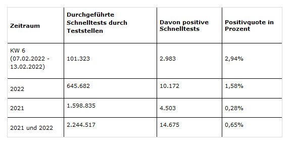 Bürger-Schnelltests: Positivquote bei 2,94 Prozent (Dienstag, 11:55 Uhr)