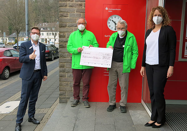 Peter Ueberberg, Regionaldirektor der Kreissparkasse Engelskirchen, überreichte dem Bürgerbusverein Engelskirchen einen Scheck über 1.000 Euro – als besondere Anerkennung für „das besondere Engagement des Vereins in den letzten Monaten, auch bei den Fahrten zum Impfzentrum nach Gummersbach.“ Der Vorsitzende Theo Boxberg bedankte sich für die großzügige Spende und betonte, dass der Verein im vergangenen Jahr seinen Fahrdienst bis auf eine kurze Zeitspanne stets aufrechterhalten habe. Zudem erweise sich das Angebot der Impffahrten als überaus sinnvoll und notwendig. Zurzeit sind beim Verein 125 Anmeldungen eingetroffen, wobei bereits 40 Fahrten erfolgreich absolviert wurden. „Inzwischen melden sich Interessenten aus der 2. Priorisierungsstufe, die über 70-Jährigen, die gefahren werden möchten. Selbstverständlich wird der Verein diesen Wünschen nachkommen“, erklärte Boxberg.