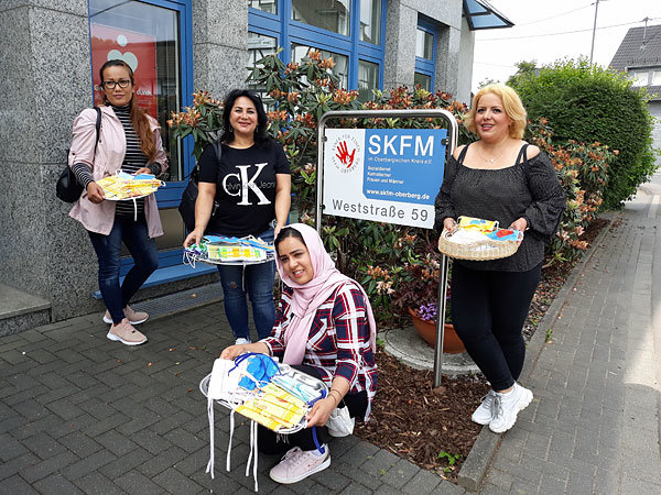 Wegen der Corona-Pandemie bat der Sozialdienst Katholischer Frauen und Männer Oberberg (SKFM) seine ehrenamtlichen Mitarbeiterinnen frühzeitig darum, Mund- und Nasen-Schutzmasken zu nähen. Die Resonanz war überwältigend: Rund 350 Exemplare wurden hergestellt, der Großteil davon von fünf geflüchteten Frauen. Eine ehrenamtliche Mitarbeiterin aus dem Iran, die den Aufruf mitbekommen hatte, konnte der Kontakt hergestellt und koordiniert werden. Die nötigen Materialen stellte der SKFM bereit. Den Frauen mit Migrationshintergrund ist es sehr wichtig zu betonen, dass sie sich für die Hilfe, die sie in der Vergangenheit vom SKFM erfahren haben, auf diese Weise revanchieren konnten. Die Masken sind in der Geschäftsstelle in Gummersbach (Weststraße 59) erhältlich und werden auf Spendenbasis abgegeben.