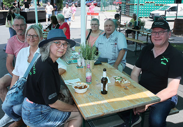 Aktionen wie Dosen werfen, Glücksrad drehen und Kinderschminken sorgten bei den Jüngsten für strahlende Gesichter und leuchtende Kinderaugen. Bei tropischen Temperaturen jenseits der 30-Grad-Grenze waren schattige Steh- und Sitzplätze unter dem alten Baumbestand besonders begehrt. Mit einem erfrischenden Kaltgetränk und bei guten Gesprächen ließ es dort besonders gut abschalten und genießen. Mit Pizza, Pommes, Spießbraten und Currywurst hatte die Brauerei auch ein breites Spektrum an kulinarischen Leckerbissen bereitgestellt, so dass neben dem Bergischen „Sportsfreund“ und „Radler“ auch die Klassiker Erzquell Pils und Zunft Kölsch reichlich Abnehmer fanden.