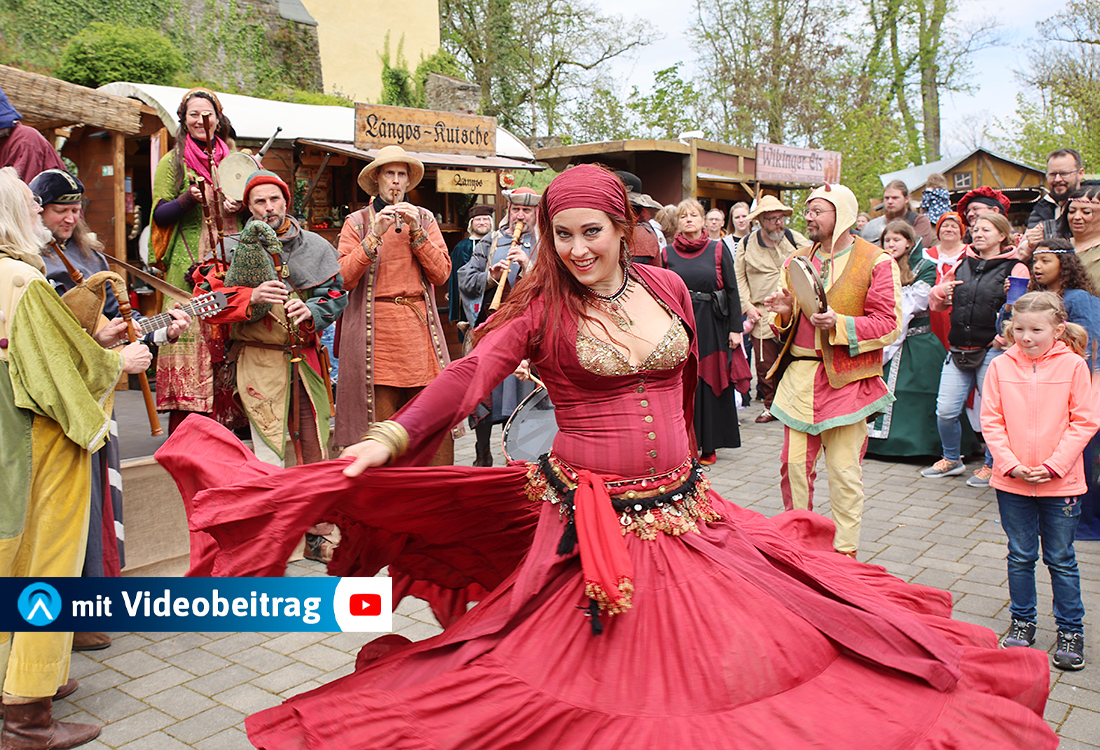 Eine veritable „Ohrenweide“ boten „die rote Füchsin“ und „Fin de Filou“, die als Duo ConFilius mit anrührenden Gesangsbeiträgen und flotter Topf-Wurfspektakel glänzen. Zu den Klängen des Ensembles Oro ließ Tänzerin Miramah die unterschiedlichen Tanzstile des Orients und des Balkans zusammenfließen, fesselte ihre Zuschauer durch hochklassiges, tänzerisches Können, erworben durch langjähriges Training in Bauchtanz und Sufi-Drehtänzen.