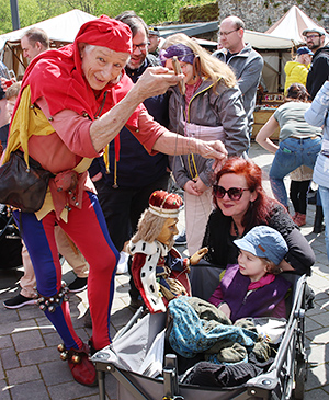 En passant ließen sich Kupfer- und Eisenschmiede, Töpfer, Brandmaler, Lampenbauer, Holzschnitzer oder Wollspinner über die Schulter blicken, boten Kräuterhändler und Seifensieder ihre Waren feil. Lupus der Gaukler beeindruckte seine Zuschauer mit genialer Ball-Jonglage, Maxx der Narr führte seinen Marionettenkönig auf dem Markt spazieren, Äbtissin Adelheid repräsentierte den geistlichen Stand im weltlichen Markttreiben und Herold Walther von der Vogelweide glänzte mit gravitätischer Allgegenwart.