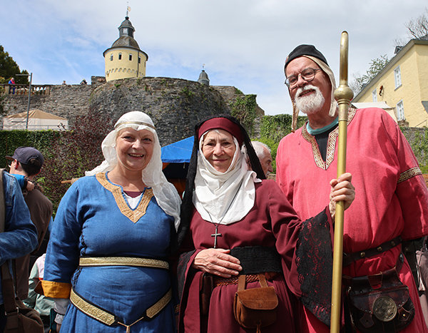 „Andere machen Therapie - ich hab´s Mittelalter.“ Dieses Bonmot, gefunden an einem Stand dessen Inhaber Holz- und Wollkunst im Angebot führen, beseelt vermutlich viele Akteure, die in den kommenden Tagen mit viel Kreativität und Authentizität den Zeitgeist des Mittelalters auf dem Nümbrechter Schlossgelände wiederbeleben. Hier treffen wild gewandete Franken auf Angelsachsen und Hunnen, begegnen sich freche Marktweiber, Mägde und gewiefte Krämer, kommen wohlhabende Edelleute mit Gauklern und abgerissenen Bettlern zusammen.