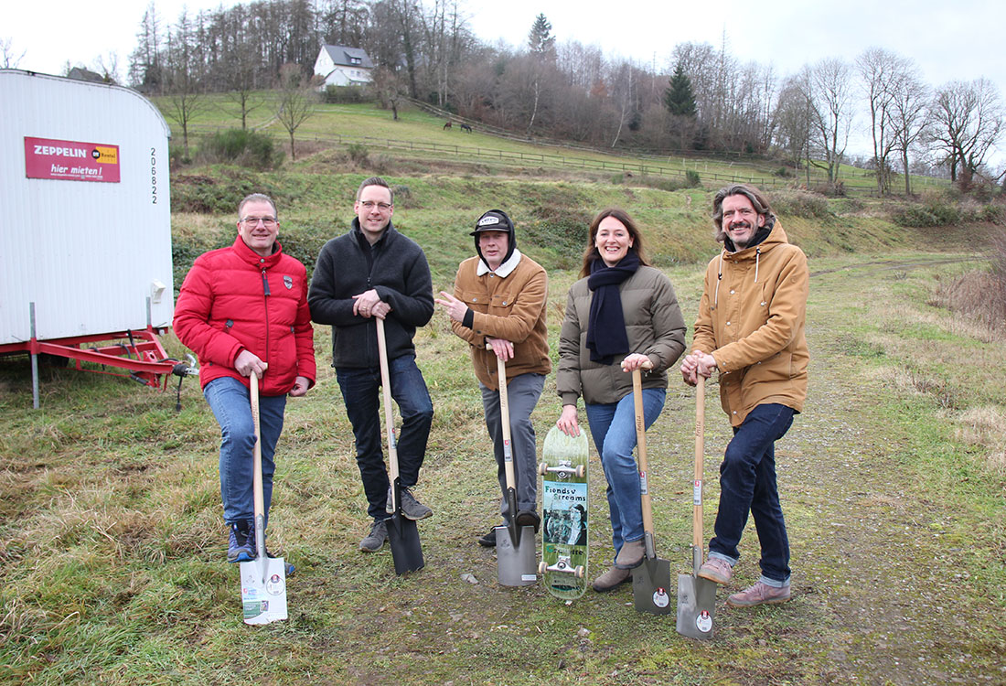 Waldbröl – Symbolischer Spatenstich für den Rollsportpark Klus – Paradies für Biker und Skater soll geschaffen werden – Auch die Straßenführung wird angepackt.
