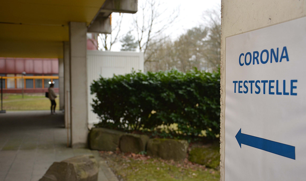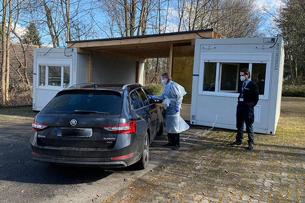 [Am Krankenhaus in Waldbröl gibt es eine Drive-In-Teststation.]