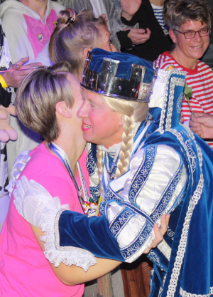 Aus den Händen von Wiehls Bürgermeister Ulrich Stücker erhielten die Regenten mit Zepter, Schlüsselbund und Spiegel die Insignien der Macht und ließen nach einem dreifach von Herzen kommenden „Bielstein Kapaaf!“ die Puppen tanzen. Die fünf Jungs von „Palaver“ hatten schon Gigs im Rhein-Energie-Stadion vor FC-Spielen und brachten das Bielsteiner Fastelovends-Publikum mit Rock und Pop auf Kölsch in Bewegung. Anschließend outete sich der Comedian, Zauberer und Entertainer Peter Löhmann als erstes Mobbing-Opfer der 80-er Jahre, denn auf Weisung seiner Mutter habe er ockerfarbene Cordhosen tragen müssen.