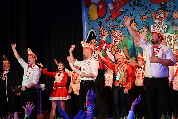 ["In den Farben getrennt, aber in der Sache vereint" lautete die Botschaft der Bielsteiner Tollitäten Nils und Tina in der Session.]
