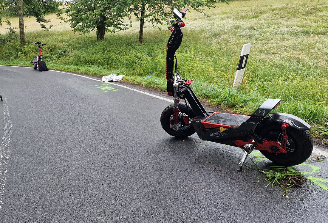 Reichshof - Ein E-Rollerfahrer musste mit dem Hubschrauber ins Krankenhaus gebracht werden - Landstraße war gesperrt - Verursacher des Unfalls vermutlich identifiziert - E-Scooter-Fahrer standen wahrscheinlich unter Drogen (AKTUALISIERT).