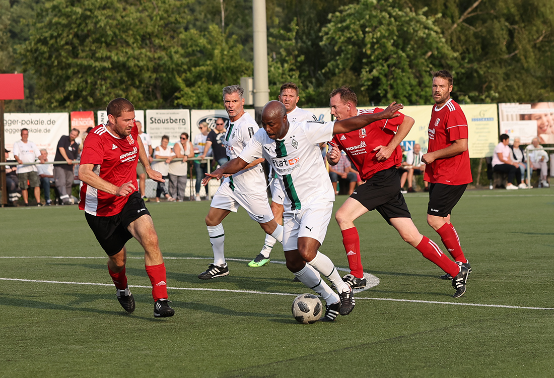 Gladbachs Trainer Herbert Laumen, der selbst in den 1970er für die Borussia aktiv war, hatte Spieler wie Karlheinz Pflipsen, Andrij Voronin, Chiquinho, Martin Schneider oder Thomas Kastenmaier an Bord. Mike Hanke musste kurzfristig passen müssen. Dafür bekamen die Gladbacher aber moralische Unterstützung vom mitangereisten Bachirou Salou, der verletzungsbedingt nicht mitwirken konnte. Der frühere Stürmer wusste am Rande der Partie mit kleinen Balleinlagen zu gefallen und wurde vom Publikum gefeiert.