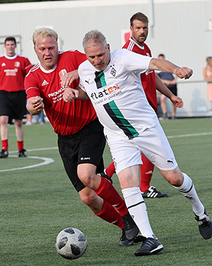 Vor zwei Jahren machte Corona dem Spiel einen Strich durch die Rechnung. Aber nach dem Motto „Aufgeschoben ist nicht aufgehoben“ trat am Freitag die Traditionself von Borussia Mönchengladbach auf der Anlage der SpVgg. Holpe-Steimelhagen gegen eine Alte-Herren-Auswahl aus Oberbergs Süden an.