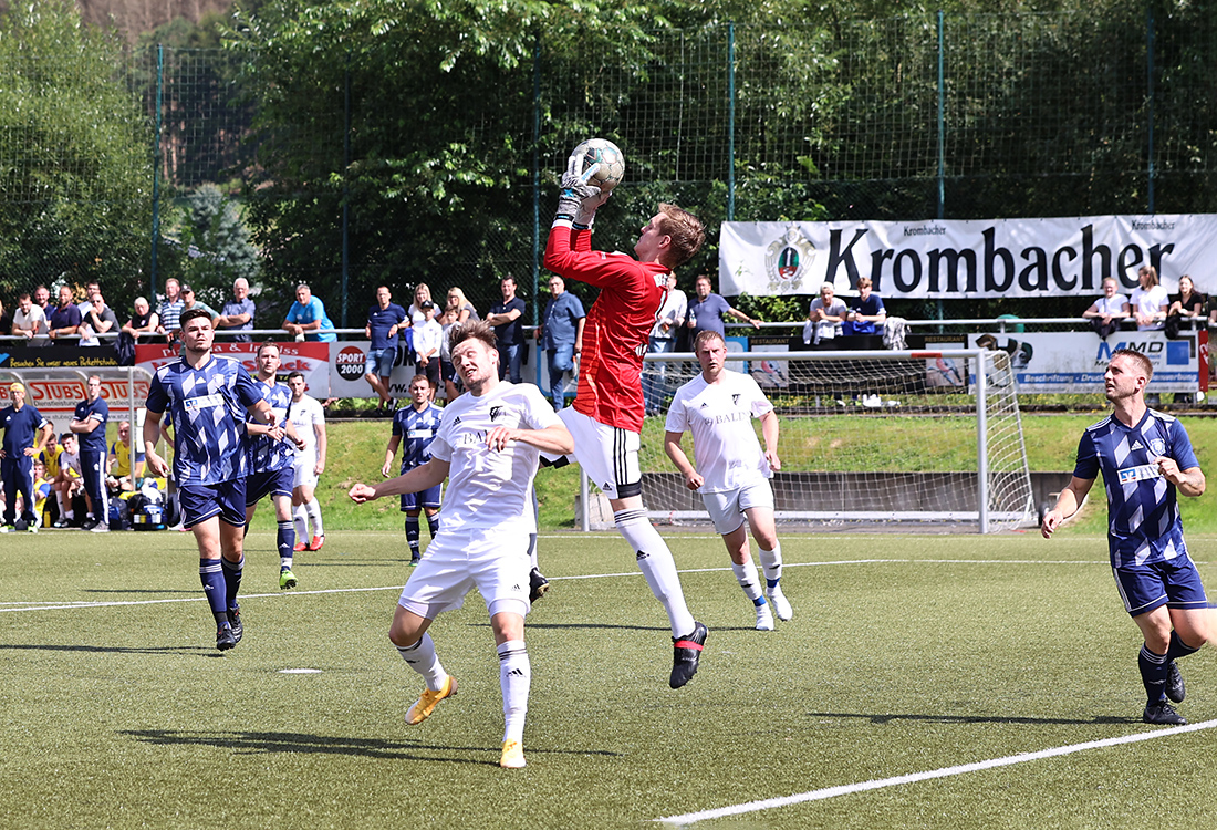 Derschlags Torwart Bastian Metz pariert Foulelfmeter von Mahmut Temür (13.)
