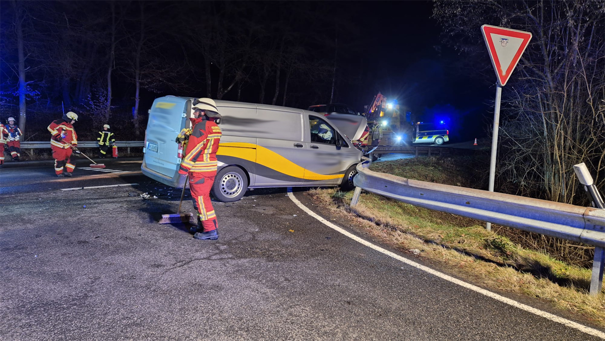 Am Feckelsberger Weg sind am Montagabend zwei Fahrzeuge zusammengestoßen. Gegen 18:35 Uhr fuhr eine 41-Jährige aus Engelskirchen in ihrem Mercedes auf dem Feckelsberger Weg in Richtung Engelskirchen und beabsichtigte nach links Richtung L 302 abzubiegen, teilte die Polizei mit. Dabei kam es zur Kollision mit dem Mercedes-Kleintransporter eines 47-Jährigen aus Engelskirchen, der auf dem Feckelsberger Weg in Richtung Schellenbach unterwegs war.