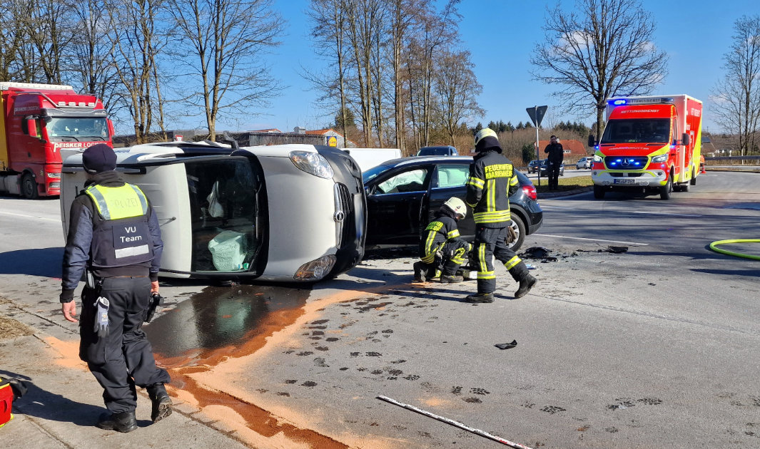 Zu einem schweren Verkehrsunfall mit drei verletzten Personen kam es am Montagmittag gegen 11:50 Uhr auf der B 256 in Marienheide-Schemmen. Nach ersten Informationen der Polizei vor Ort wollte ein 63-jähriger Autofahrer mit seinem Opel Kleintransporter an der Einmündung zur L 306 in Richtung Gummersbach abbiegen. Hierbei übersah er den schwarzen Mercedes eines Gummersbacher Ehepaars (73, 68), die mit ihrem Fahrzeug in Richtung Marienheide unterwegs waren. Durch die Wucht der Kollision kippte der Opel auf die Beifahrerseite.