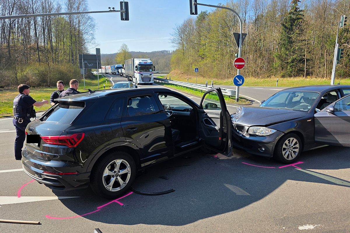 Drei Leichtverletzte und ein Sachschaden von etwa 20.000 Euro: Vermutlich, weil er von der Sonne geblendet wurde, hat am Donnerstagvormittag ein 32-jähriger Autofahrer aus Waldbröl eine rote Ampel an der Anschlussstelle Bielstein übersehen und ist im Einmündungsbereich der L302 mit der B56 mit seinem BMW mit dem Audi einer Wiehlerin (51) kollidiert. Der BMW-Fahrer war nach Angaben der Polizei vor Ort in Richtung der Wiehler Ortschaft Forst unterwegs, die Wiehlerin und ihr Beifahrer (53) kamen aus Richtung Weiershagen und wollten auf die A4 in Richtung Köln auffahren.