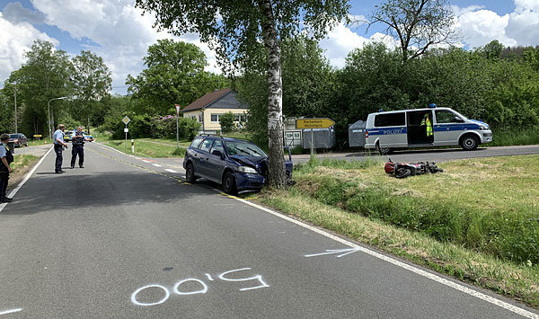 Ihr Wagen war nach dem Zusammenstoß mit dem Roller von der Straße abgekommen und frontal vor einen Baum geprallt. Die L 339 war bis etwa 14:45 Uhr gesperrt. Der 57-Jährige hätte laut Polizei mit dem Roller im Übrigen gar nicht fahren dürfen: Er verfügte weder über die erforderliche Fahrerlaubnis noch war der Roller mit einem aktuellen Versicherungskennzeichen versehen.