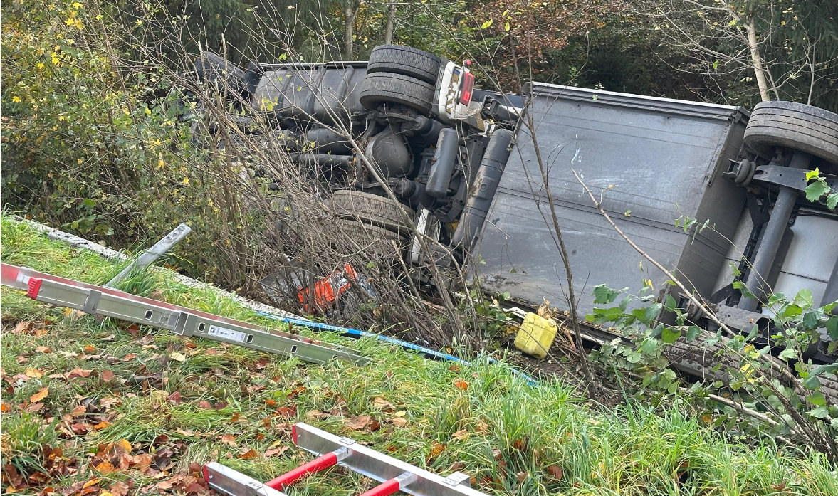 Lkw im Graben: A4 in Richtung Olpe noch bis zum Abend gesperrt