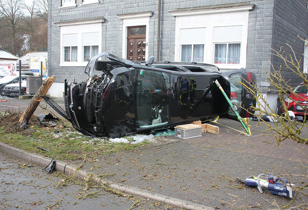 Vor Ort waren neben Polizei und Rettungsdienst 40 Einsatzkräfte der Löschzüge I und II der Feuerwehr Bergneustadt. Torsten Götz, stellvertretender Leiter der Feuerwehr, erläuterte, dass die Feuerwehr den eingeschlossenen Mann zunächst stabilisiert und dann über den Kofferraum aus dem Auto befreit hat. Anschließend leisteten die Einsatzkäfte technische Unterstützung.