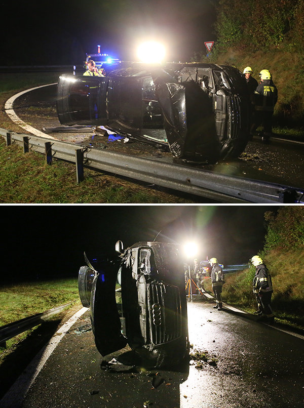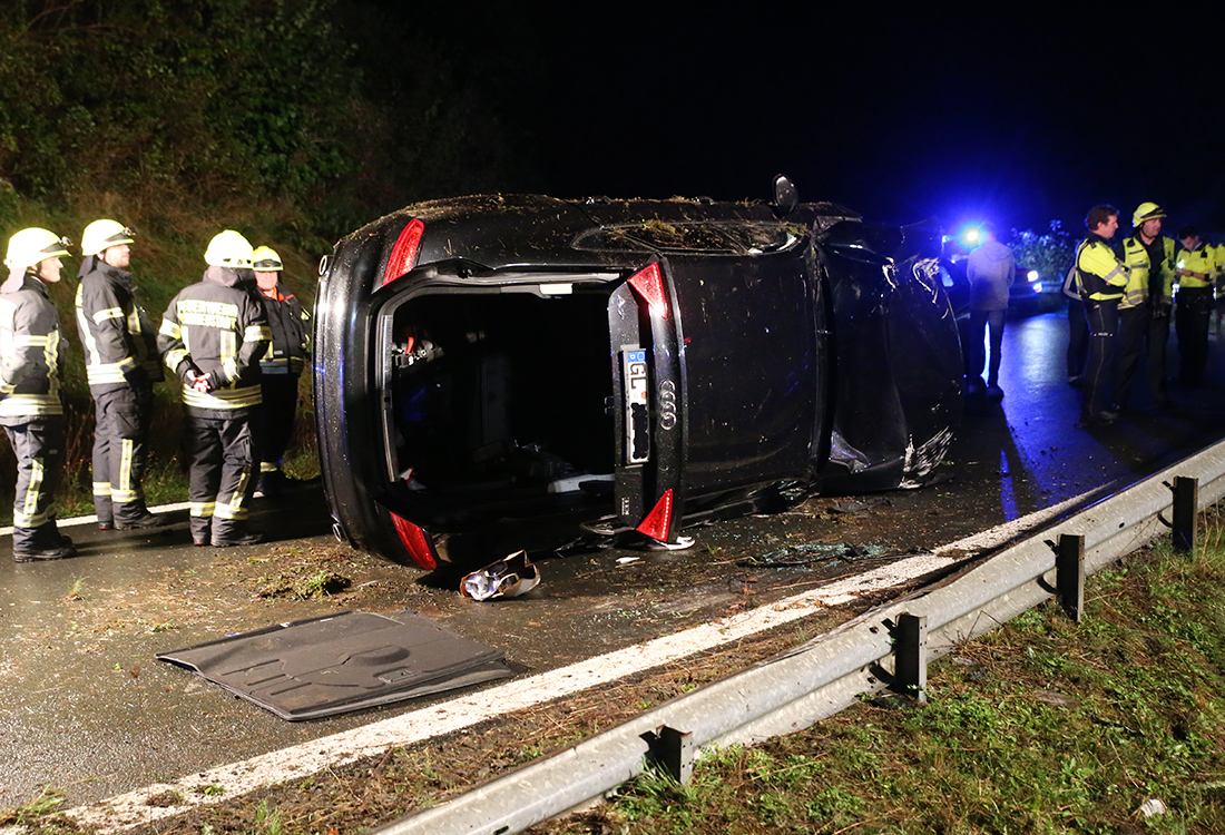 Oberberg - Auffahrt Richtung Bergneustadt war zwei Stunden gesperrt - Auto blieb nach Überschlag auf der Seite liegen (AKTUALISIERT).