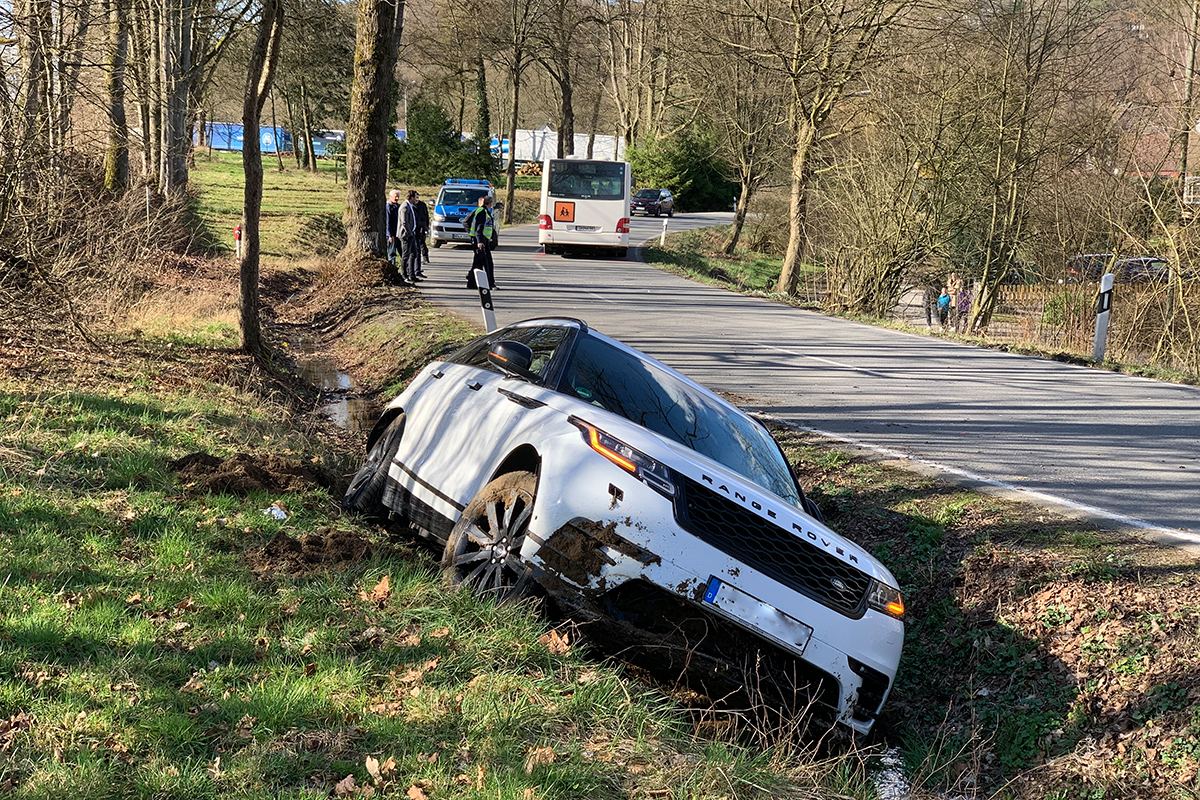 Hierbei kollidierte er mit einem Schulbus, der mit etwa 20 Kindern an Bord auf dem Weg Richtung Brüchermühle war. Während der Range Rover anschließend im Graben landete, zerplatzte beim Bus eine Scheibe im hinteren Bereich des Fahrzeugs. Ein Schüler zog sich bei dem Unfall eine Platzwunde. Der Neunjährige wurde mit seinem Vater zur Behandlung in ein Krankenhaus gebracht. Die L336 war für die Dauer der Unfallaufnahme für etwa zweieinhalb Stunden gesperrt.