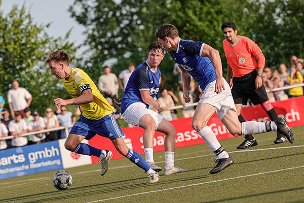 Als dann Stjepan Markanovic, erneut nach einem Freistoß, verkürzte, ging das Zittern bei Blau-Gelb richtig los, zumal Elsenroth in Überzahl alles nach vorne warf – und das vermeintliche 3:3 erzielte. Doch der Assistent hatte bei der sehenswerten Direktabnahme von Tim Taufenbach einen TuS-Akteur in der strafbaren Zone gesehen (90.). Der Schiri legte einen üppigen Nachschlag drauf, aber auch die letzte Möglichkeit zum Ausgleich durch Sebastian Esplör verpuffte (90.+6.).