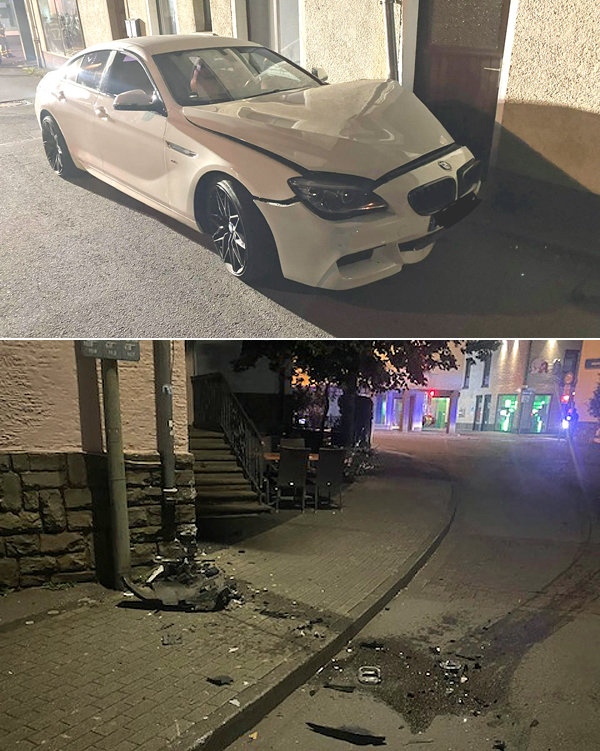Heute Morgen um 6 Uhr rückte der Löschzug Lindlar erneut aus, diesmal wegen eines Verkehrsunfalls. Der Fahrer eines weißen BMW war zunächst auf der Kölner Straße gegen die Hauswand der Pizzeria Roma geprallt. Anschließend setzte er das Auto offenbar zurück und fuhr in die Straße „Otto–Lob-Winkel“ weiter, wo der BMW erneut eine Häuserfassade touchierte, ehe der Fahrer ausstieg und flüchtete. Rund anderthalb Stunden benötigte der Löschzug Lindlar, um ausgelaufene Betriebsstoffe aufzunehmen, berichtete der Lindlarer Feuerwehrsprecher Hans Peter Scheurer.