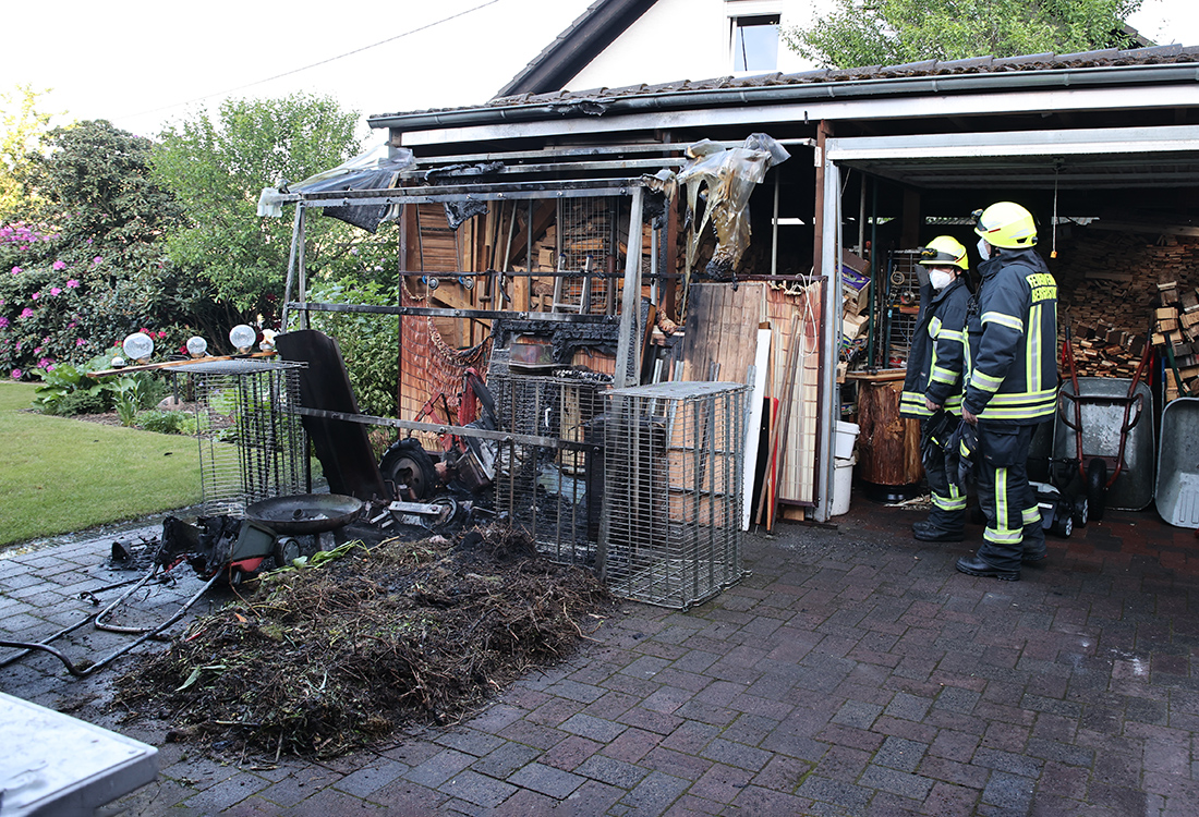 Glimpflich endete ein Feuer in Bergneustadt-Wiedenest am heutigen Morgen. Der Feuerwehr war um kurz nach 6 Uhr der Brand eines Carports gemeldet worden, Mitglieder der Einheiten Dörspetal und Bergneustadt machten sich auf den Weg in die Ibitschenstraße. Vor dem Unterstand, in dem der Eigentümer unter anderem Brennholz lagerte, hatten eine Mülltonne und weitere Gegenstände angefangen zu kokeln.