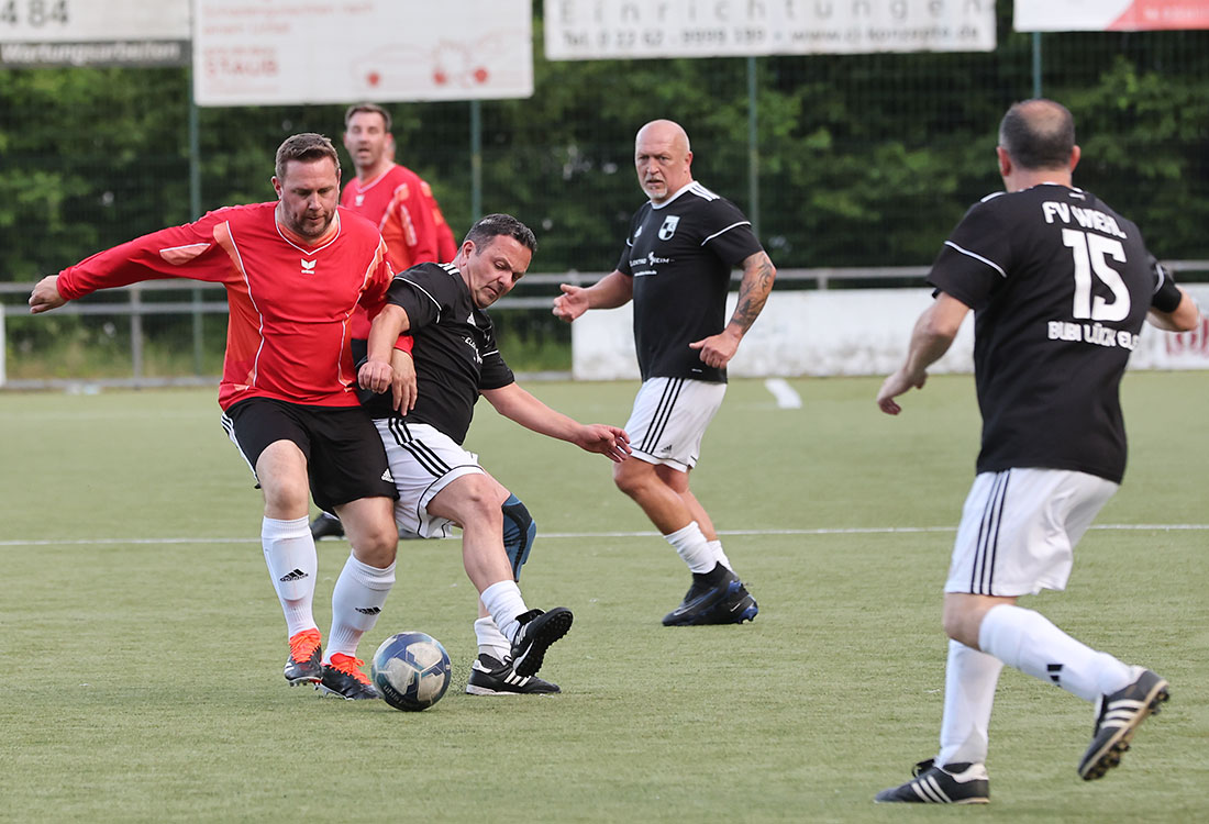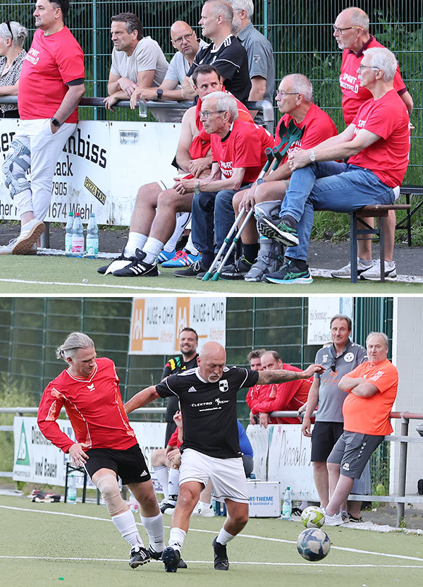 Dass inzwischen 30 Jahren ins Land gezogen sind, merkte man dem einen oder anderen im Verlauf des Einlagespiels an. Noch vor der ersten Trinkpause – hier wurde nicht nur Wasser gereicht – hatten die Wiehler schon drei Verletzte zu beklagen. Offensivszenen waren rar gesät, sodass ein Elfmeter die Entscheidung bringen musste. Stahl hob im Strafraum ab, Schiri Stephan Greb zeigte auf den Punkt – was auf und außerhalb des Platzes für großes Gelächter sorgte, denn der VAR hätte die astreine Schwalbe sicher einkassiert. "Den Elfer kann man geben, muss man aber nicht", so Stahl augenzwinkernd im Interview mit Moderator Dirk Hartmann nach dem Abpfiff.
