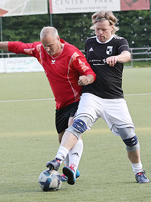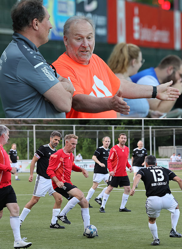 Sascha Obst nahm das Geschenk und verlud Torwart Marco Buchholz (33.). Die von Michael Ranke (Wiehl) und Rainer Idel (Wildbergerhütte) betreute Oberberg-Auswahl besaß noch zwei, drei Möglichkeiten zum Ausgleich, doch letztlich blieb es beim "dreckigen 1:0-Sieg" (Stahl) der Gastgeber. Der Organisator bedankte sich hernach bei allen Beteiligten und freute sich, dass so viele Ehemalige den Weg nach Wiehl gefunden hatten. Dazu gehörte auch Coach Theo Boxberg, der es sich trotz einer Achillessehnenverletzung nicht nehmen ließ, zusammen mit Norbert Teipel auf der Trainerbank Platz zu nehmen. Als Schirmherr des Matches fungierte der langjährige Jugendleiter des TuS/FV Wiehl, Helmut Lewandowski.
