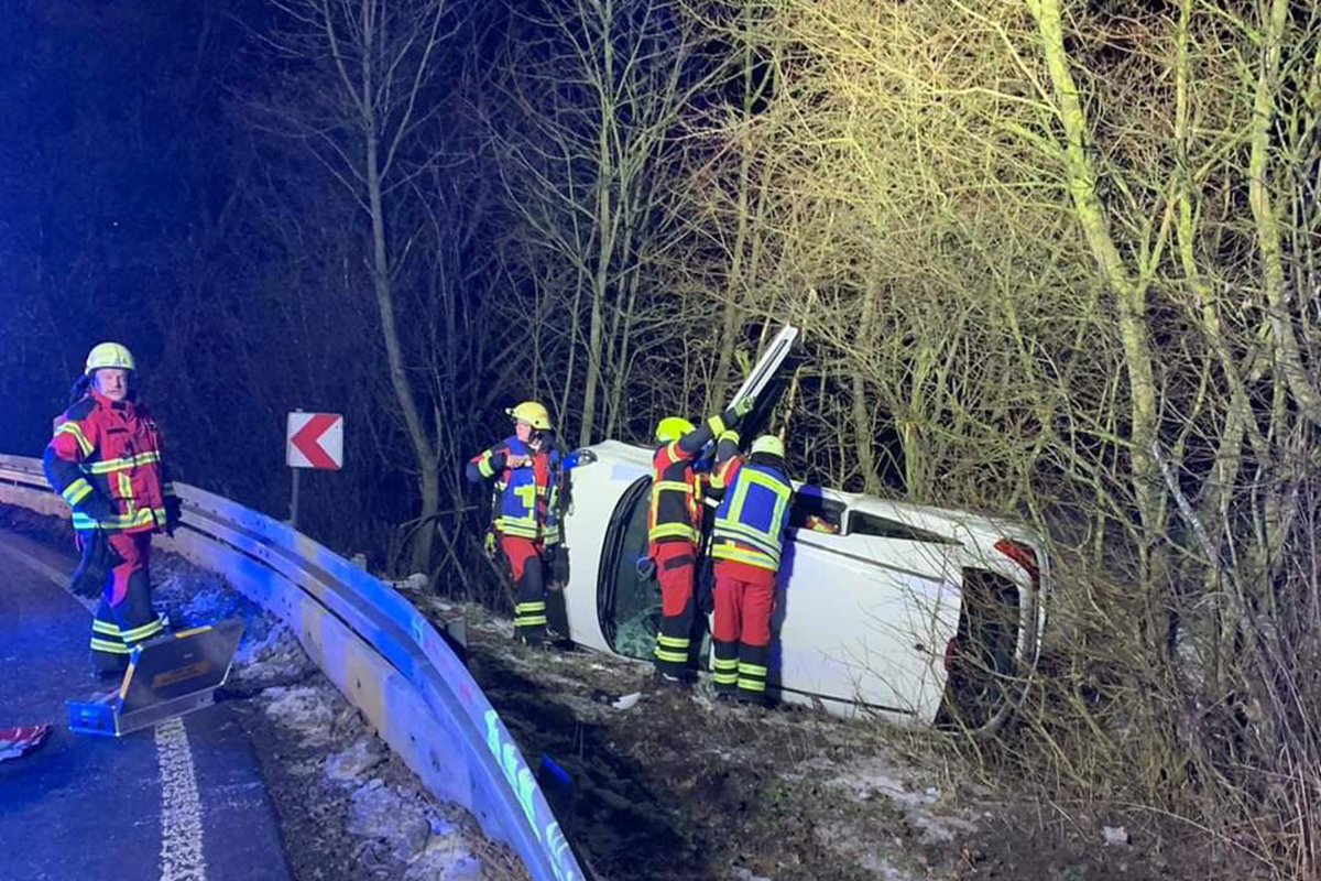 Auch die Feuerwehr war zur Unfallstelle ausgerückt. Die Wipperfürtherin war beim Eintreffen der Einsatzkräfte aber schon auf dem Fahrzeug befreit und wurde anschließend vom Rettungsdienst betreut. Sie wurde nach Angaben der Feuerwehr zwar in ein Krankenhaus gebracht, blieb bei dem Unfall aber unverletzt. Die Einsatzkräfte leuchteten die Einsatzstelle aus und klemmten die Batterie des Wagens ab. Die Polizei schätzt den Schaden an Fahrzeug und Leitplanke auf etwa 5.000 Euro.