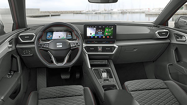 Der brandneue SEAT Leon ist das erste umfassend digital vernetzte Fahrzeug von SEAT – sowohl im Fahrzeug (Full Link inklusive Android Auto und drahtlosem CarPlay; onlinebasierte Navigation und -Dienste) als auch außerhalb (SEAT Connect).