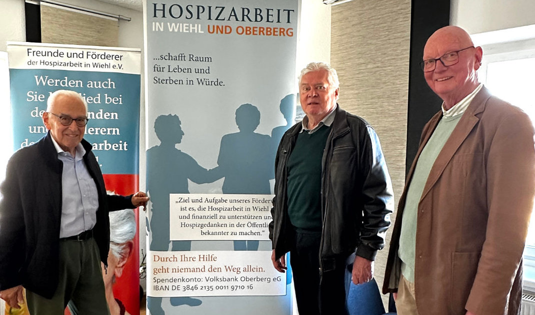 Vorsitzender ist seitdem Uwe Kotz, dessen Ehefrau Inge Kotz vor 25 Jahren als ehrenamtliche Hospizhelferin tätig war. Er blickt zurück: „Ihr Engagement hat mir gezeigt, wie wichtig eine gute Ausbildung der Helferinnen und Helfer ist.“ Zu Beginn der Vereinstätigkeit lag der Schwerpunkt auf der Finanzierung der Schulungen der Mitarbeitenden des ambulanten Hospizdienstes der Malteser. Der Verein hieß zu diesem Zeitpunkt „Freunde und Förderer der Malteser Hospizgruppe Wiehl“. Heute zählt der Verein 283 Mitglieder, Michael Adomaitis, Dr. Jorg Nürmberger und Harald Herhaus sind die Gesichter des Vereins, die dessen Anliegen als Ehrenamtler nach außen tragen. „Und wir wünschen uns, dass die Zahl der Mitglieder weiter wächst“, sind sie sich mit dem Vorsitzenden einig.