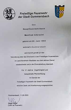 Gummersbach - Manfred Albrecht wurde kürzlich altersbedingt aus dem aktiven Dienst der Feuerwehr entlassen, allerdings nicht zum ersten Mal - Eine Gesetzesänderung machte den Wiedereintritt möglich.