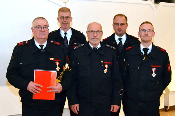 In diesem Jahr konnten wieder zahlreiche Mitglieder durch die Wehrführung, den Kreisbrandmeister und Bürgermeister Redenius geehrt beziehungsweise befördert werden (siehe Kasten). Nicht alltäglich war die Ehrung für den ehemaligen Leiter der Feuerwehr Nümbrecht Ulrich Polke. Er wurde für 70 Jahre Mitgliedschaft ausgezeichnet. Für besonderes Engagement wurde Wolfgang Kaiser gewürdigt. Er kümmerte sich mehrere Jahrzehnte federführend um die Ausbildung und die Kleiderkammer der Feuerwehr und wird nun - nach Erreichen der Altersgrenze für den aktiven Dienst - etwas kürzertreten. Geehrt wurde außerdem auch Udo Müller für seine langjährigen Verdienste als Leiter der Feuerwehr und für sein Engagement auf Kreisebene. Er bekam das Feuerwehrehrenkreuz in Gold.