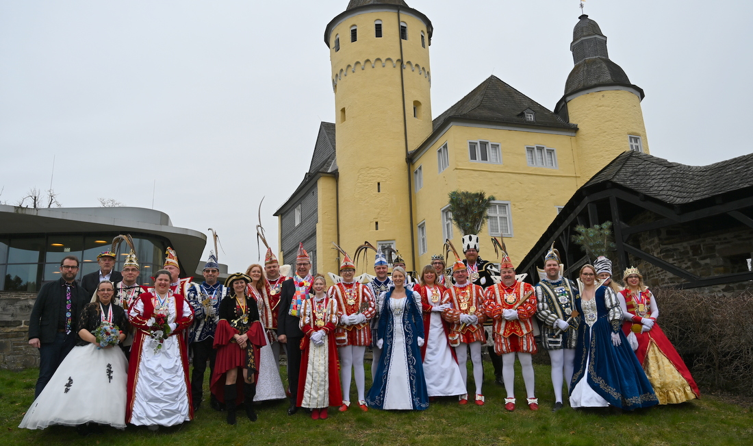Oberberg – Ein letztes Mal lud Jochen Hagt als amtierender Landrat die Tollitäten aus der Region zum Empfang auf Schloss Homburg ein – Buntes Miteinander bis in den späten Abend.