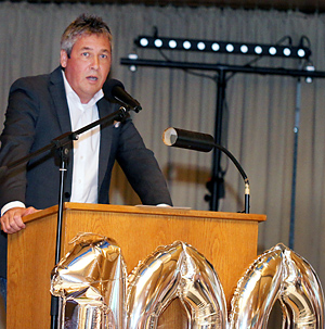 Der Vereinsvorsitzende Frank Engelbert (Foto) dankte zu Beginn den vielen Mitstreitern des Vereins in den vergangenen 100 Jahren – Spielern, Trainern, Funktionäre, Sponsoren und Gönnern, der lokalen Politik, die unter anderem den Bau eines Kunstrasenplatzes ermöglichte, seinen aktuellen Vorstandskollegen und allen, „die den RS 19“ mit Leben erfüllt haben.