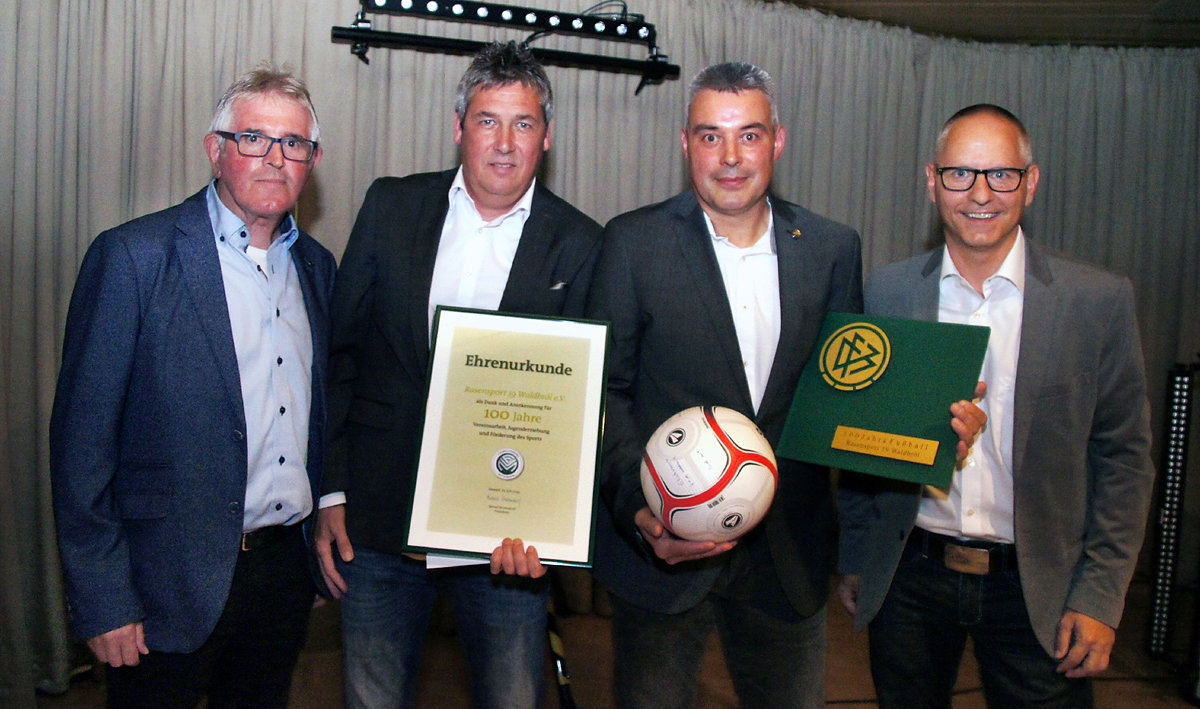 Markus Müller übermittelte Grußworte und Geschenke vom Fussball-Verband Mittelrhein (FVM). Außerdem betonte Müller, der selbst gebürtig aus Lindlar kommt, dass sich der Deutsche Fußball-Bund trotz einer aktuell eher angekratzten Reputation viel für den Amateurfußball engagiere. Neben der Ehrenurkunde des FVM überreichte Müller die Ehrenplakette und eine Spende des DFB.