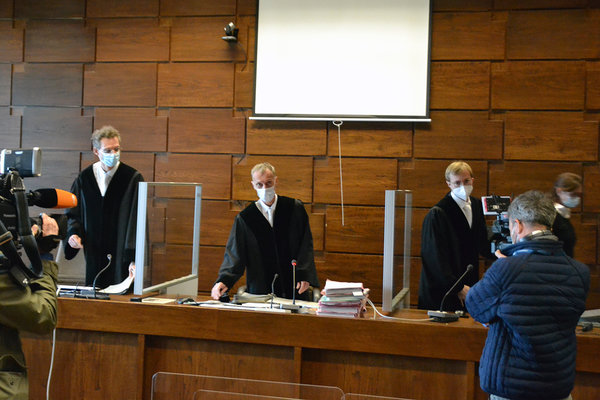 [Unter dem Vorsitz von Richter Christoph Kaufmann startete der Prozess unter großem medialen Interesse. Allein fünf Fernsehkamerateams waren anwesend.]