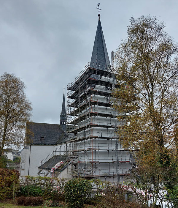 Gummersbach – Nach sechs Jahren ist die Sanierung nahezu abgeschlossen – Weiter große Sorgen um Dachstuhl des Haupt- und Querschiffs - Dieser musste notgesichert werden.