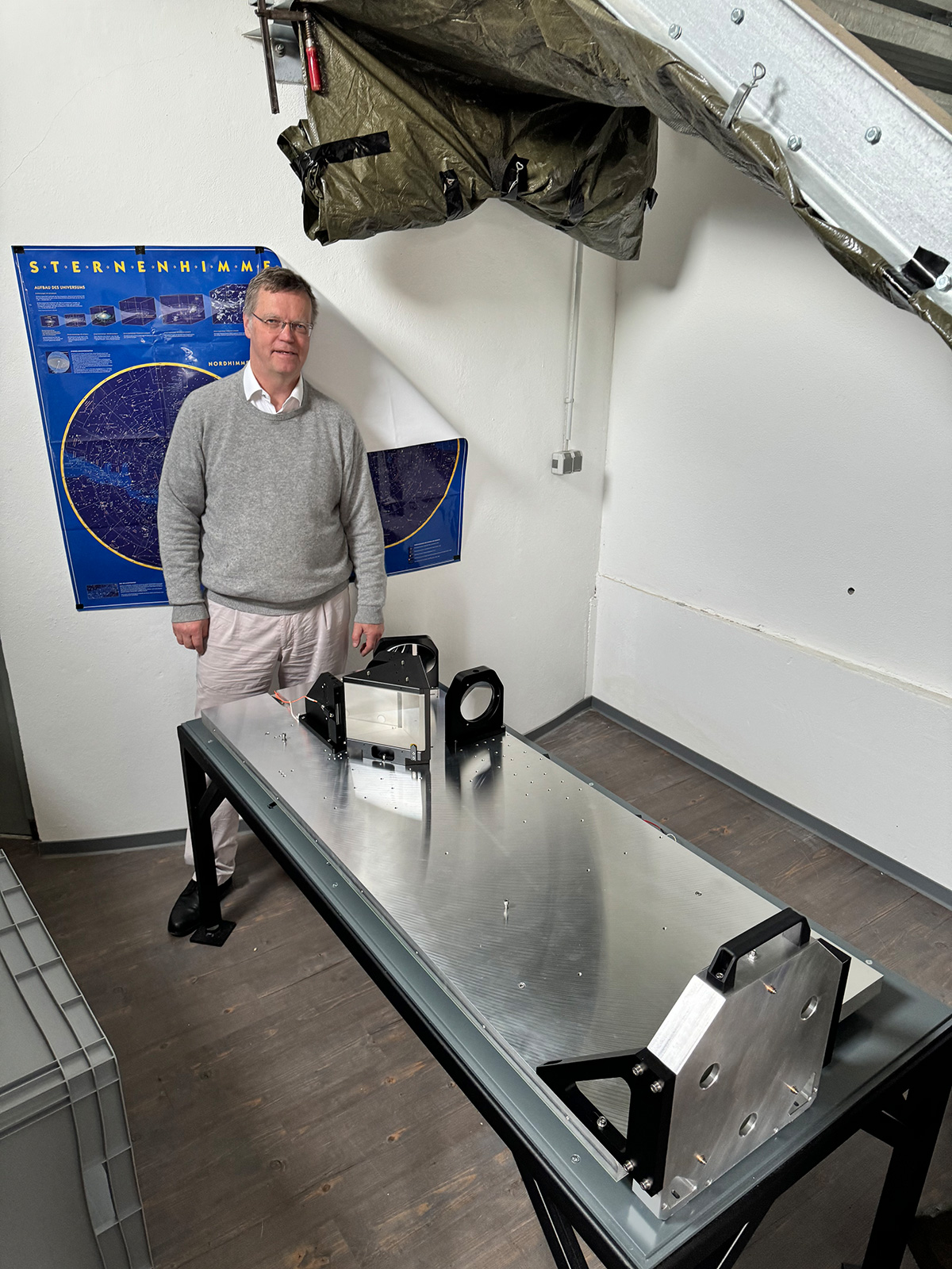 An der Schülersternwarte in Schnörringen kann man bald noch genauer ins Weltall schauen. Dort wurde am Vormittag ein neuer Spektrograf vorgestellt, der es kurz gesagt erlaubt, dreidimensionale Bilder anhand unterschiedlicher Farbspektren zu erstellen und daraus zum Beispiel Entfernungen zu berechnen. „Es ist ein kleines Gerät mit riesiger Wirkung“, hatte der Vorsitzende des Betreibervereins Initiativkreis STScI, Dr. Thomas Eversberg, der Gästeschar im Seminarraum der Sternwarte erklärt.