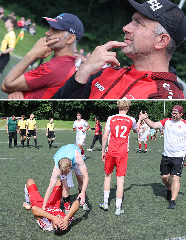 Eduard Koop sah in der Schlussphase nach einer Notbremse Rot, den fälligen Strafstoß verwandelte Fliegner sicher zum 3:0. „Frielingsdorf wollte es heute einfach mehr als wir“, konstatierte Wipperfürths Trainer Giovanni Bernardo. Trotz aller Enttäuschung attestierte er seiner Truppe eine starke Saison. „Mit voller Kapelle wäre hier vielleicht etwas mehr drin gewesen, aber so haben wir einfach verdient verloren“, gratulierte er den Siegern zum Aufstieg. Mit lediglich drei (!) Saisonniederlagen schaut seine Mannschaft wieder in die Röhre.