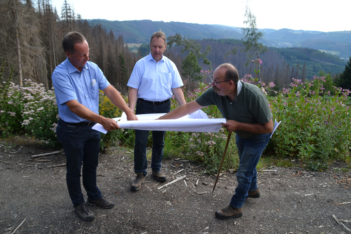 KUNO sieht eine Wiederaufforstung durch gruppenweise Pflanzung sowie die Entstehung von Vorwäldern aus Pioniergehölzen auf abgeernteten Flächen vor. Der Wald soll neben der Aufforstung auch selbst regenerieren können. Tote Fichten sollen zudem stehen bleiben. Denn die abgestorbenen Bäume haben immer noch einen enormen Nutzen, spenden Schatten und schützen den Boden vor Austrocknung und fördern Rohhumus. „Selbst totes Holz arbeitet noch“, erklärt Lang. Nach Sturm Friederike wurden 19.000 neue Pflanzen auf freien Flächen vom Kreis gesetzt, 70 Prozent fielen der Trockenheit zum Opfer. Die Gefahr der Verkarstung der Böden ist enorm.