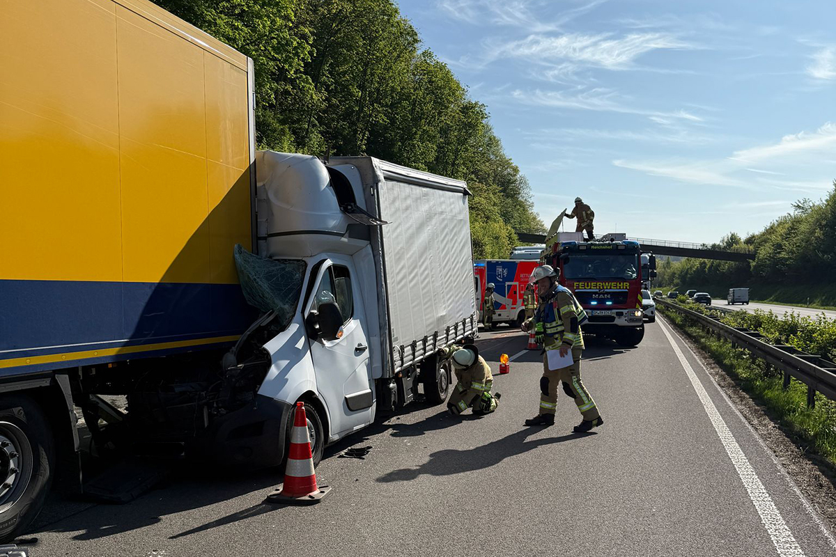 Mit schweren Verletzungen musste am Dienstagvormittag der Fahrer eines in Bulgarien gemeldeten Kleinlasters ins Krankenhaus gebracht werden. Aus bislang unbekannter Ursache war er gegen 9:10 Uhr auf der A4 zwischen den Anschlussstellen Bergneustadt und Gummersbach mit seinem 7,5-Tonner auf den Sattelzug eines Lastwagens aufgefahren. Das Führerhaus wurde hierbei vollkommen eingedrückt. Der Mann konnte nach Angaben der Feuerwehr aber selbstständig aus der vollkommen zerstörten Fahrerkabine hinauskrabbeln. Nach einer rettungsdienstlichen Erstversorgung wurde er umgehend in ein Krankenhaus gebracht.