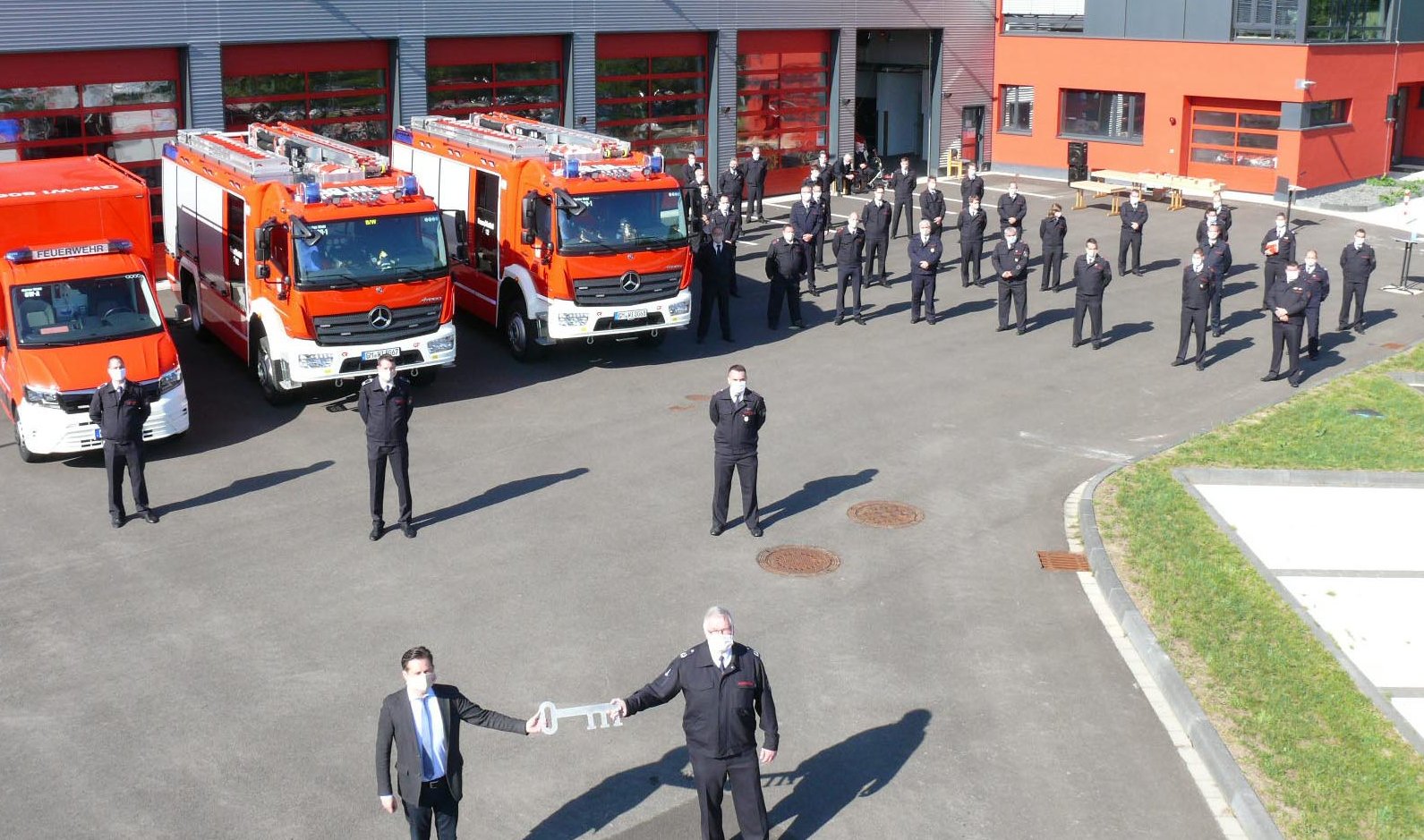 Wiehl - Im Rahmen einer „modifizierten Sonderveranstaltung“ übergab Bürgermeister Ulrich Stücker drei neue Fahrzeuge an die Feuerwehr - Beförderungen und Ehrungen verdienter Feuerwehrleute.