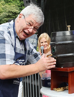 Als Nümbrechts Bürgermeister Hilko Redenius gegen 17:30 Uhr zum traditionellen Fassanstich samt einer Runde Freibier einlud, richtete er letztmals in seiner im September endenden Amtszeit seinen Dank an alle Aktiven, Helfer und Sponsoren, ohne deren Engagement die Mega-Veranstaltung undenkbar sei. Zu diesem Zeitpunkt hatte sich der „Familiennachmittag“ bereits zu einem geselligen Generationen-Gedränge gemausert.