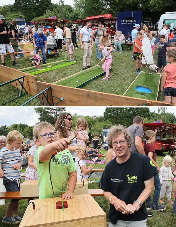 Die Besucher des Nümbrechter Kurparks fanden sich gestern in einem überdimensionalen quecksilbrigen Wimmelbild wieder, denn das jährliche Lichterfest startete mit einem kunterbunten Familiennachmittag, den zahllose Menschen offenbar als Wochenendausflugsziel angesteuert hatten. Kein Wunder, hatte sich der Freizeitpark mit den Aktivangeboten der Gemeindewerke Nümbrecht, des DLRG, der Volksbank Oberberg und der Sparkasse Gummersbach in einen Spielepark verwandelt, wo sich der Nachwuchs an abwechslungsreichen Stationen austoben konnte.