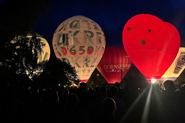 [Als erster optischer Höhepunkt zog das stimmungsvolle Ballon-Glühen alle Blicke des Publikums auf sich.]