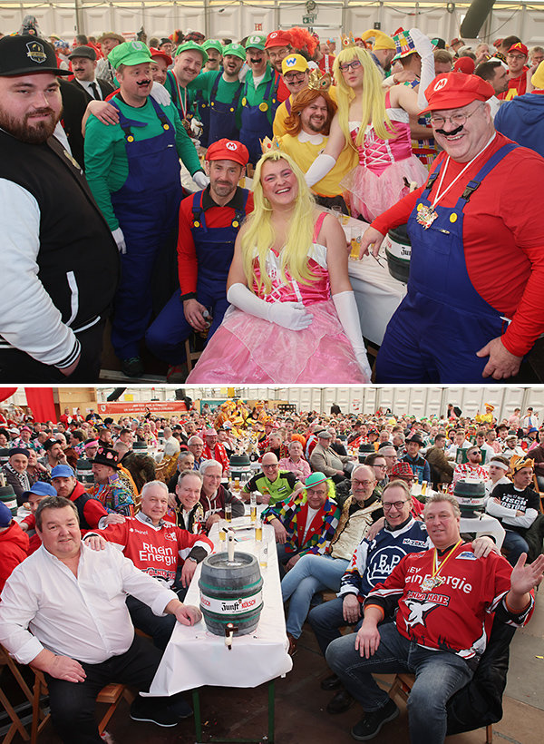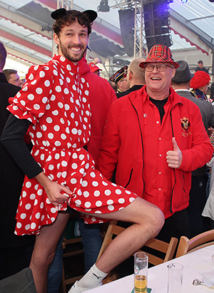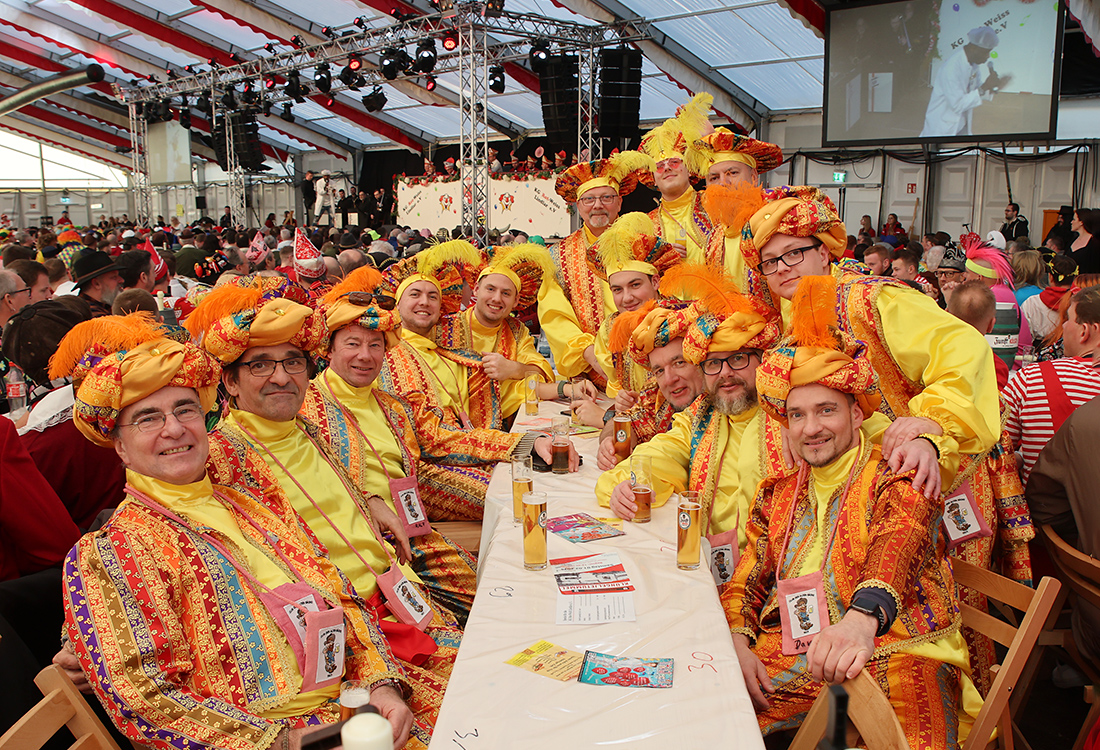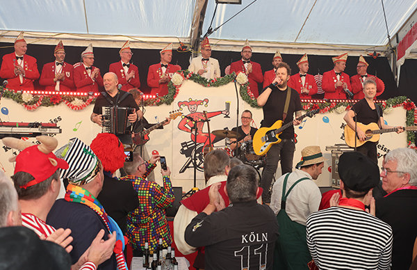 Die schmantigen Silver Ager „Willi und Ernst“ (Dirk Zimmer und Markus Kirschaum) unterhielten mit brandheißen Neuigkeiten aus ihrem Rentnerdasein. Von null auf hundert sprang die Stimmungskurve im Zelt mit dem Auftritt der Swinging Fanfares, die fünf Kölschrocker von Kasalla gossen mit „Alle Jläser huh“ und der „Stadt mir Ka“ nochmals zusätzliches Öl ins Stimmungsfeuer. Mit ihrer energiegeladenen Tanzperformance präsentierten die Ladies der Fauth Dance Company einen echten Augenschmaus, die Cheerleader des 1.FC Köln setzten mit Akrobatik, Tanz und Stunts die Sahnehaube auf eine grandiose Sitzung.